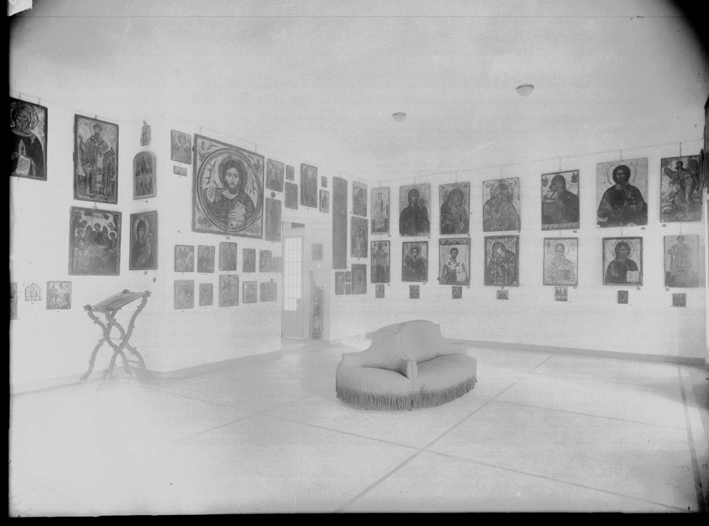 Η αμφιπρόσωπη εικόνα προέρχεται από την Τούζλα στα παράλια της Προποντίδας και παραλήφθηκε στις 22 Αυγούστου 1927. Η παράσταση της Παναγίας στην κύρια όψη φέρει μεταγενέστερη επιγραφή με την επωνυμία « η Θεοσκέπαστος ». Στο κάτω μέρος εικονίζεται σειρά αγίων σε μικρότερη κλίμακα. Είναι σε προτομή και μετωπικοί. Από αριστερά προς τα δεξιά η αγία Κυριακή που σε μεταγενέστερη επιγραφή φέρεται ως αγία Φωτεινή, η αγία Παρασκευή, η αγία Θεοδοσία, οι άγιοι Γεώργιος και Δημήτριος, ο προφήτης Δανιήλ, ο προφήτης Ηλίας και ο άγιος Ανδρέας Κρήτης. Η εικόνα, σύμφωνα με το έγγραφο της παραλαβής της, έφερε αργυρή επένδυση η οποία επεστράφη στην επιτροπή παραλαβής κειμηλίων προσφύγων. Πιθανότατα, λόγω της μεγάλης αρχαιολογικής αξίας η επιτροπή έκρινε ότι η αμφιπρόσωπη εικόνα πρέπει να παραμείνει και να εκτεθεί στο Μουσείο, ενώ η μεταγενέστερη πιθανότατα επένδυση να επιστραφεί σε κάποια από τις κοινότητες των προσφύγων που εγκαταστάθηκαν στην Ελλάδα και να κοσμήσει ένα νεοαγενειρόμενο ναό τους.